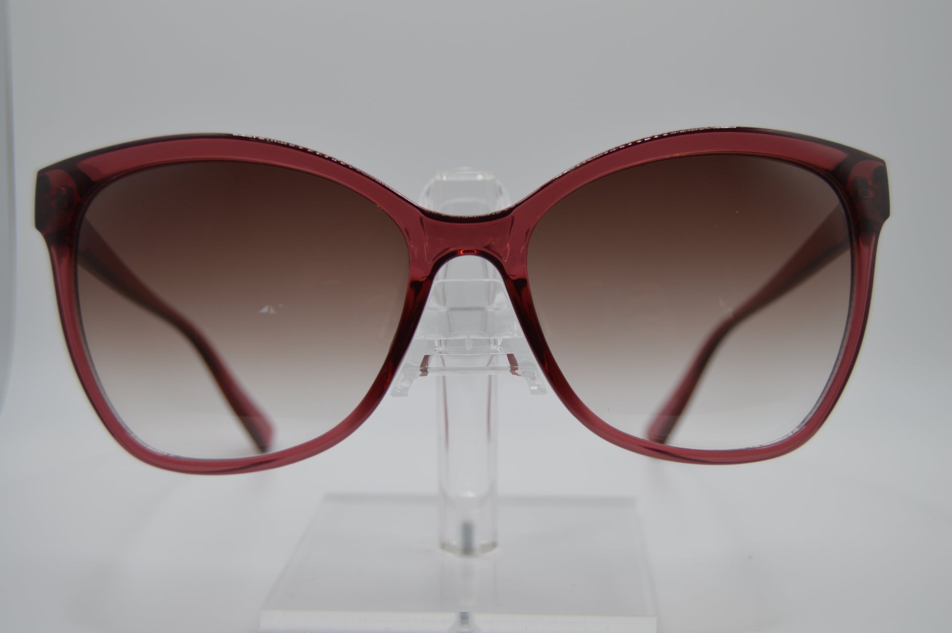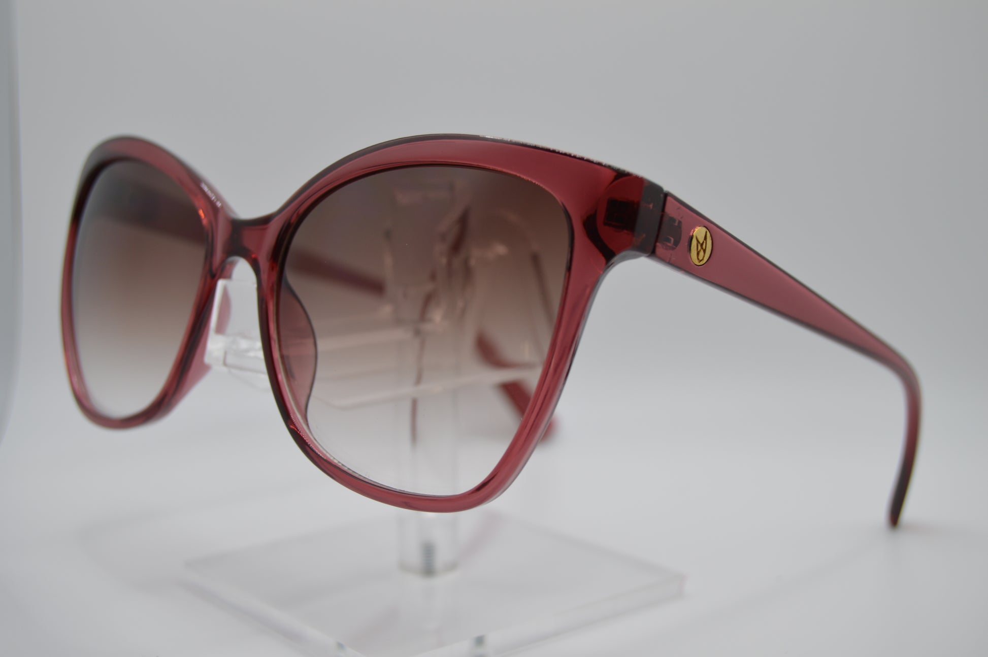 Large burgundy sunglasses with gold emblem and gradient lenses