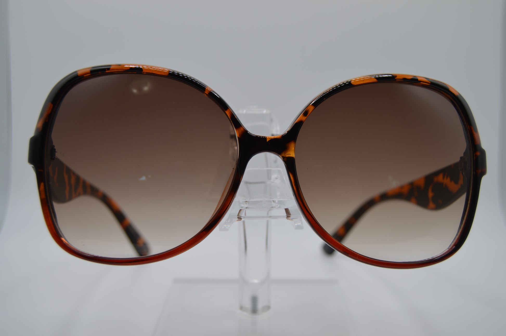Large round sunglasses with tortoiseshell frame and brown gradient lenses