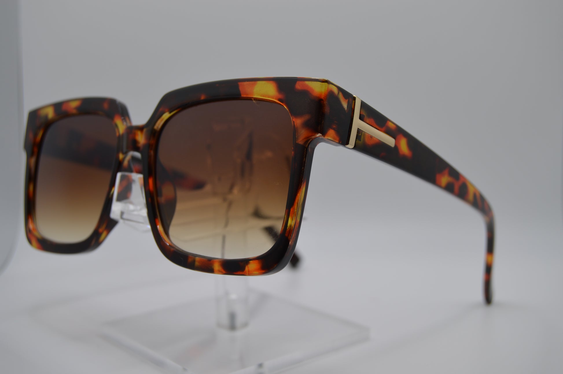 Tortoiseshell sunglasses with gold accents and brown lenses