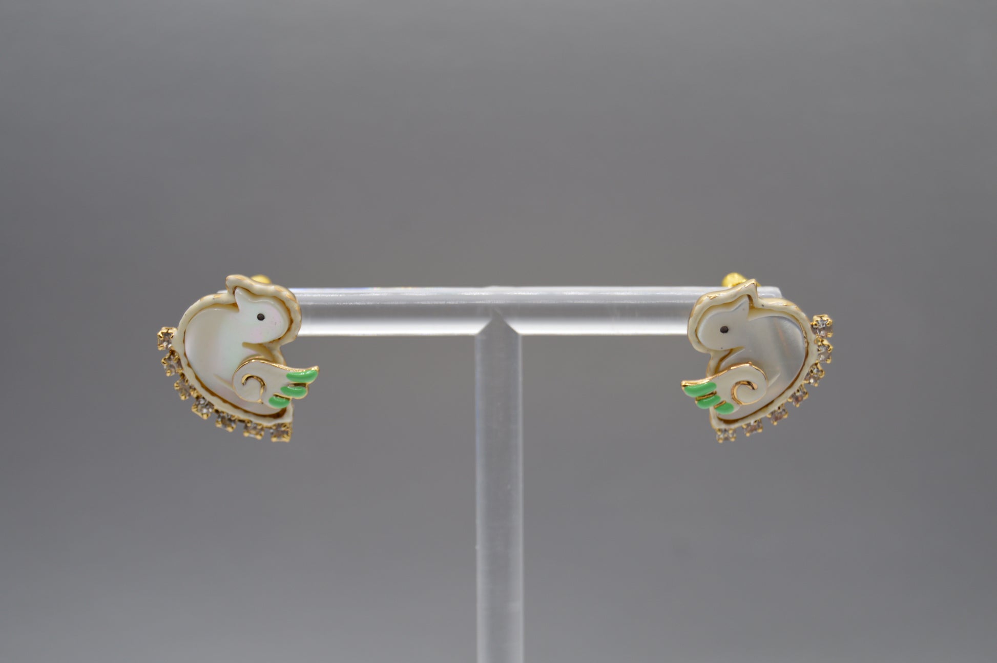 Design: Bird-shaped earrings with gold detailing and bead embellishments